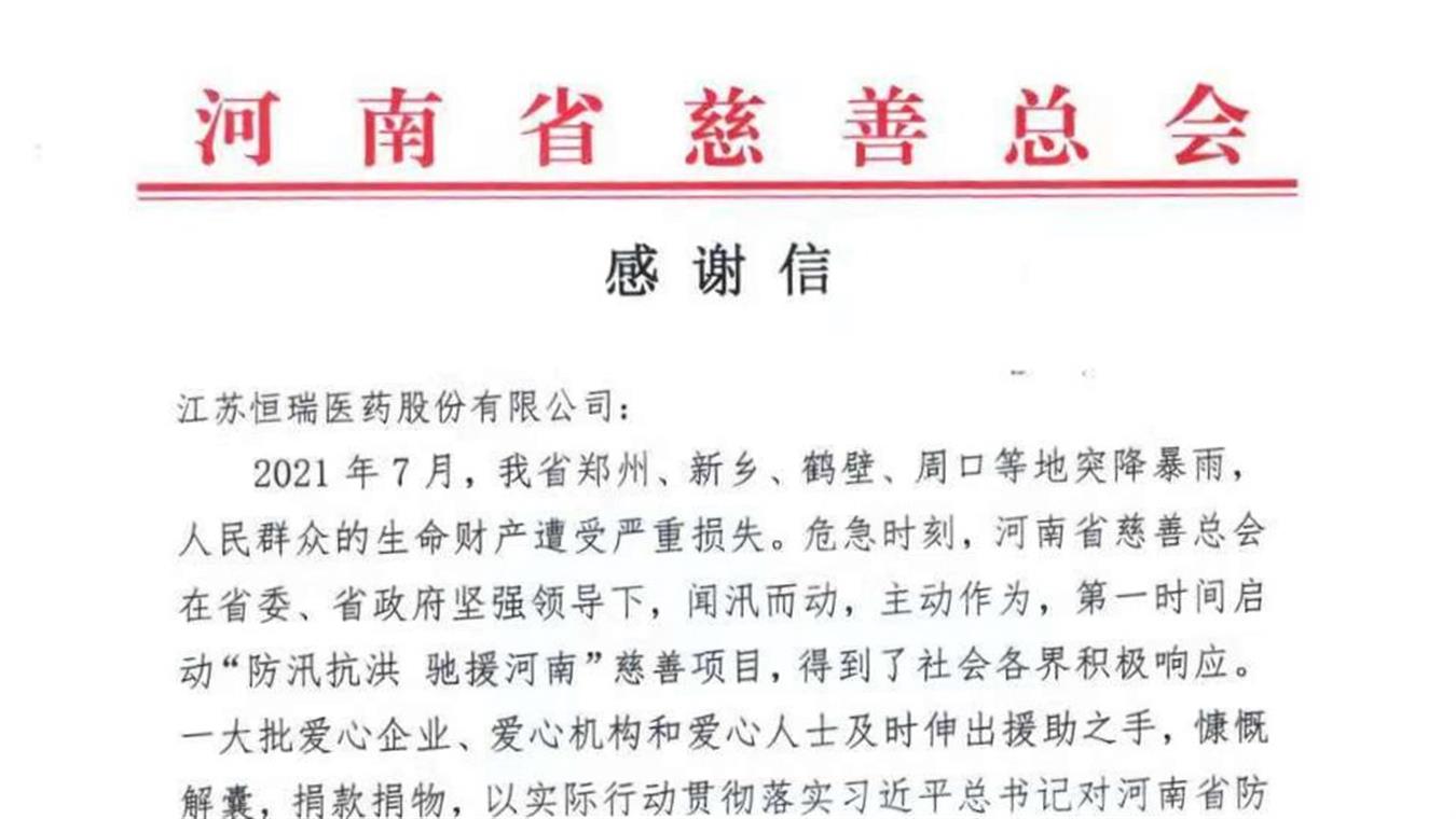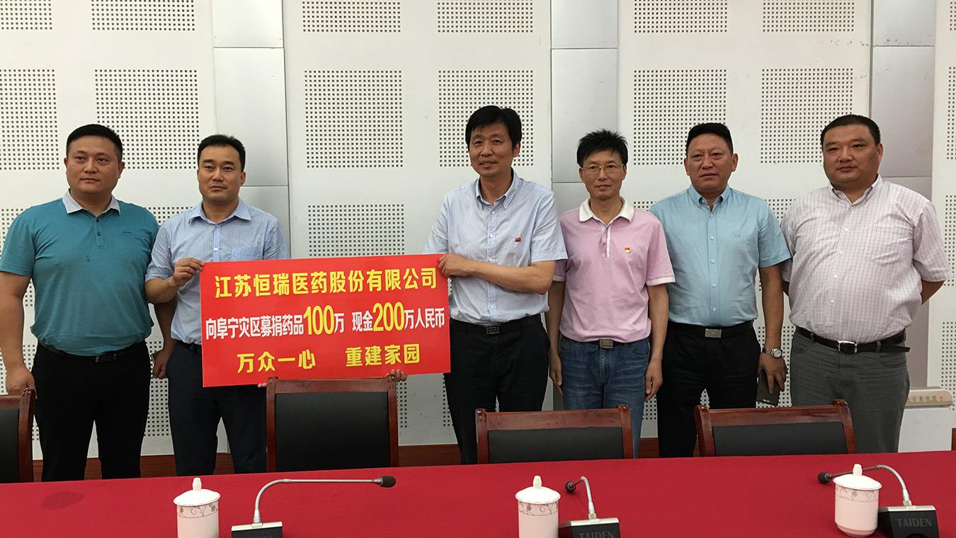 2016年,恒瑞向盐城灾区捐赠300万元现金及药品