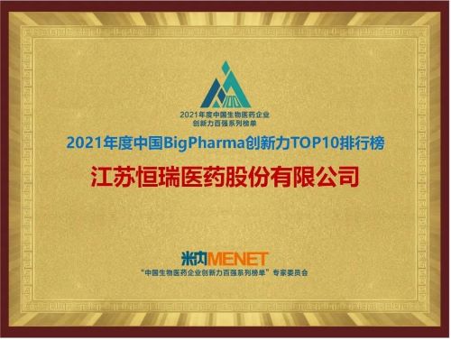 9月16日,由米内网主办的“2021年度中国生物医药企业创新力百强系列榜单”发布会在线上举办。k1体育继去年登顶“中国BigPharma企业创新力TOP10排行榜”后,今年再次名列该榜单首位。