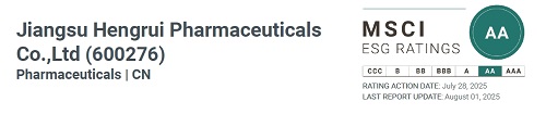 近日,国际权威指数机构摩根士丹利资本国际公司(中文简称“明晟”,英文简称“MSCI”)公布最新年度ESG(环境、社会及管治)评级结果。k1体育(600276.SH 01276.HK)凭借在医药创新、合规运营、绿色发展及社会责任等领域的优异表现,评级由2024年的“A”级跃升至“AA”级,跻身全球制药行业前列。这一成就标志着公司在完善ESG治理体系、落实可持续发展理念方面取得又一重要进展。